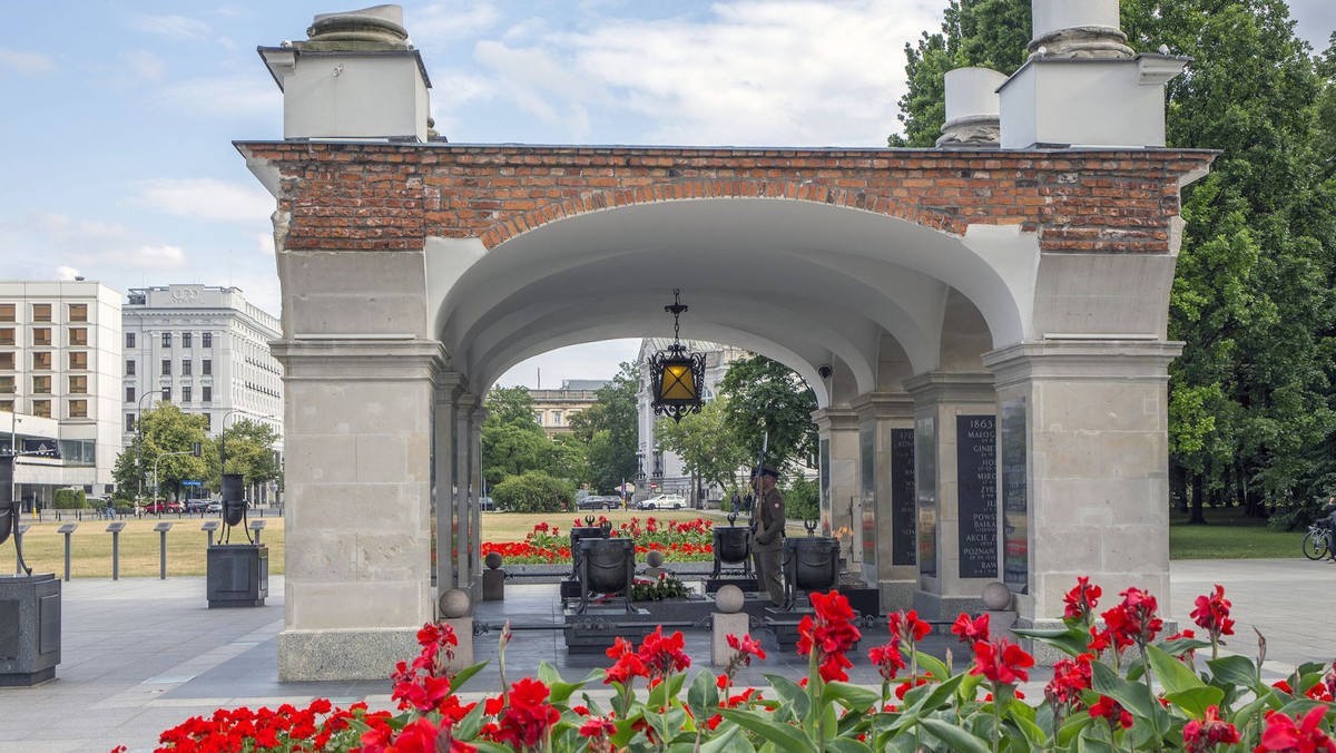 Pałac saski, w którym podczas i wojny światowej w okresie okupacji niemieckiej mieścił się cywilny zarząd miasta. Trwa rekonstrukcja dawnego pałacu saskiego, jednego z dwóch miejsc w mieście, w których zatrzymał się napoleon. Powiedzmy szczerze, pałac saski został zburzony w 1944 roku. Przestrzeń historyczna jest tam teraz, jedyne miejsce, w którym tak właściwie widać, że warszawa nie zawsze wyglądała tak jak współcześnie. Zwróćmy uwagę jeszcze na to, że prawdziwy pałac saski tak czy siak zostałby przebudowany lub zburzony, nawet gdyby i rp przetrwała.